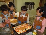 1月17日(水 )団行事「おもちつき」例年お借りしていた日動火災のグランドが借用できず、今年は日吉台中学校でおもちつきを行いました。 ピューピューと寒い北風が吹いてきましたが、ビーバー達は、折り紙飛行機作りや、手つなぎ鬼、お餅つきにがんばりました。 美味しいお餅をたくさんいただきました。 |
