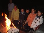 11月11日(土)〜12日(日)「秋の舎営」![]() 今年の秋の舎営はくろがねの青少年野外活動センターで行いました。 寺家ふるさと村の熊野神社で開会セレモニーを行いました。 ふるさと村全域を使ったフィールドビンゴをやって、みんなでさまざまな秋のものを探しました。 「番犬ゲーム」や「コウモリと蛾」、「忍び寄り」などのゲームをやって思いっきり秋の自然を体感し、美味しいお弁当を食べてから、くろがねに向かいました。 くろがねに着くと入所式、開村式をやり、さっそくビーバ村を作りました。 ビーバー村ができたら、次は葉っぱをたくさん集めて、焼きいもをしました。サツマイモと、ジャガイモと焼きリンゴを焼きました。 今回のキャンプの隠れたテーマは「何でも丸焼き」。 もちろん、焼きいももじゃがバタも焼きリンゴも、皆、もとの形のままのものを食べました。 それで、夕食はダッチオーブンを使って牛肉の塊の丸焼き(ローストビーフ)と、鶏の丸焼き(スタッフドチキン)、簡易スモーカーを作って、魚やばら肉の塊をこれまたまるごと燻製にしました。 焼きあがるまでの間、ビーバー達は夕闇の迫る裏山に探検に出かけました。かなり歩いたところで、隊長が言いました。 「みんなの勇気を試したい。ここからビッグビーバーは一人で歩いて帰るんだよ。ビーバーは二人一組だ。」 リーダーとボーイ・カブのお兄さんはさっさと先に帰ってしまいました。(実は隊長の指示で脇道や危険な場所にビーバーが行かないように、隠れて見張る役目だったのです) ビーバー達は本当に恐がっていましたが、勇気を出してすっかり暗くなった山道を歩 いていきました。がんばったビーバー達を待っていたのは食べきれないほどのごちそう。 肉料理や燻製はもとより、ほんのりこげた飯盒のご飯も、ちょっと焦げ臭いまるごと野菜の蒸し焼きもキャンプでしか味わえない本当のご馳走でした。 その夜のキャンドルファイアは、全員参加で、ビーバーの出し物はもとより、お母さん達のファッションショー、お父さん達の大魔術などの他に、リーダーは「ポンコツカー」と「縁日行ったんや」などのスタンツ、ゲーム、ソングなど盛りだくさんに行いました。 ヤーン(夜話)の前頃になるとさすがに元気なビーバー達もあくびが出るようになりましたが、静かに話し始めた隊長の話を皆、真剣な面持ちで聞いてくれました。 寝床に入ったビーバー達は副長のお話を聞きながら、眠りにつきました。 次の朝は7時起床だったのですが、6時には起き始めました。 朝ご飯のパンもダッチオーブンで焼きました。(火が強すぎて二回焼き直しましたがとってもおいしく焼けました) この日のメインは港北ニュータウン内を地図で現在位置を確認しながら歩く、マップハイクです。 ビーバーには方位の概念も、地形を抽象化できる能力もありません。 ![]() そこで、1/25000の白地図を拡大して、配布し、二人づつのグループにそれぞれ二名以上の大人が付き、道の曲がり方や、交差の仕方、橋や池、斜面などのランドマークを確認しながら、現在位置を地図上にプロットしながらのハイキングを行いました。 途中の川和富士山の頂上でお弁当(朝、自分達がにぎったおにぎり)を食べました。 普段の散歩より少し早めのペースで、約7Km強のコースです。ゴール直前では元気がなくなったり、涙ぐむビーバーもいましたが、がんばって歩き通しました。 そんなビーバー達も、閉会セレモニーでは元気に歌を歌い、木の葉章や小枝章を貰っていました。 ビーバーの宿泊を伴う活動についてはいろいろと話題がありますが、御父母と共にスカウト活動を楽しみ、寝食を共にすることで家族以外の大人や仲間と親しみ、そうして培った友情は素直に、仲間を助け、協力する気持ちとして現れています。ハイキング中はふざけたり、わがままを言う者もほとんどありませんでした。積極的にチャレンジする態度も見られました。 今年のテーマは「チャレンジ」、ちょっとがんばる。しっかり休むで、今後も進めて行きたいと思います |