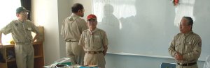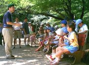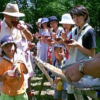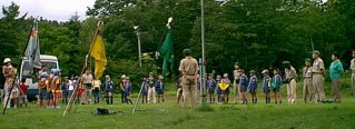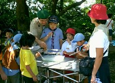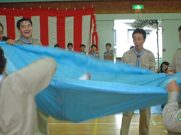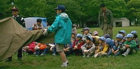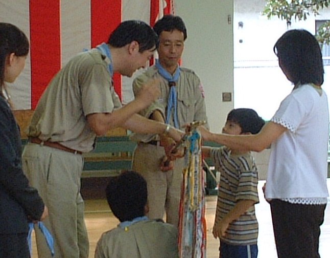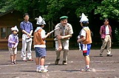 9月9日(日)団行事「入団上進式」![]() 大綱小学校で入団上進式を行いました。新しい仲間がビーバー隊に入隊しました。 ビッグビーバーからカブ隊への上進はビーバーが最後の川を渡った後、隊長が、ビッグビーバーを空中高く投げ上げ、それをカブのリーダーが広げたブルーシートで受け止めるという儀式でした。 「最後の川」は試練を潜り抜ける勇気を持つこと、そして、ビーバーの川からカブの森への「ジャンプ」はビーバー達が、リーダーを信頼していることを確認する儀式です。みんな、リーダーを信頼し、なんの恐れもなく、ビーバー隊長に投げられていました。 大人と子供の理想的な関係は、大人が自分の目標に邁進し、その姿を包み隠さず、子供に見せることです。しかし、ビーバー年代の子供は親の目標を理解することができません。 しかし、だからと言って、子供に迎合する必要はありません。大事なことは、子供の問題にかかわる(親以外の)大人がいるということを自然に理解させること(そのことは世界観の広がりにつながります)であり、ボーイスカウトのキャンプのような「非日常」の活動を体験させることなのです。 |
