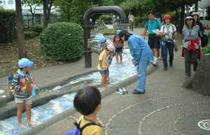 10月14日(日)団行事「赤い羽根共同募金〜命の海」 新横浜駅で赤い羽根の共同募金の奉仕活動を行いました。そのあと、鶴見川で水辺の生き物を観察し、水の中に小さな生き物達がいること、その小さな生き物をより大きな生き物が食べること、そうして命が循環していることを学びました。 ![]() それから新横浜国際競技場にあるレジャープールに行きました。 流れる温水プールやジャグジーなどで、自分達が海の中の生き物になったつもりで楽しく遊びました。 |