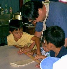1月13日(日)団行事「旗揚げ式〜おもちつき」 年の始めに横浜第79団のスカウトが全員集まって、旗揚げ式をしました。 ビーバーは旗揚げ式のあと、原始人の土器を作りました。土器は「オーブン陶土」という粘土を使い、家庭のオーブンで焼くことができます。そのあと、みんなでおもちつきの歌を歌いながらおもちつきをしました。重たい杵をよっこらしょと持ち上げるビーバー達。それでもおいしいお餅がつけました。 きなこやあずきや大根おろし、お雑煮など、育成会の皆さんが用意してくれ、ビーバー達はたくさんお餅を食べました。 食事の後は地区の新年ラリーの準備でみんなで折り紙ヒコーキを作りました。 ![]() |